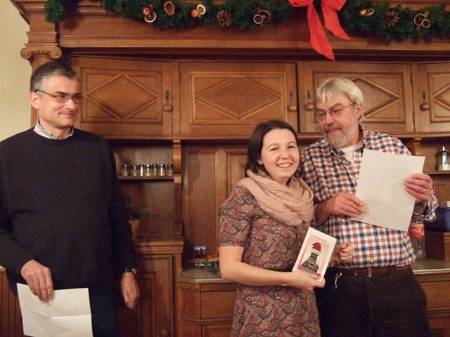 Nach einer lustigen Adventsgeschichte kam der Nikolaus mit seinen Begleitern, Knecht Ruprecht und Engel, zu Besuch. Da gab es für jede*n gedichtete Verse mit Tadel, Lob und Anerkennung, die für viele heitere Gesichter sorgten. Auch die Wichtelgeschenke erfreuten viele in der Runde.
